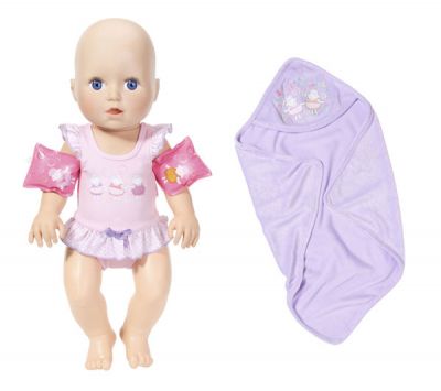 Baby Annabell Nauka Pływania. Wystarczy, że nasza Annbell dotknie wody i już po chwili zaczyna ruszać nóżkami oraz rączkami.Jeśli położysz lalkę na pleckach pamietaj aby ją przytrzymać aby mogła nauczyć sie pływać. W przeciwnym razie popłynie na brzuszku.Baby Annabell uwielbia...