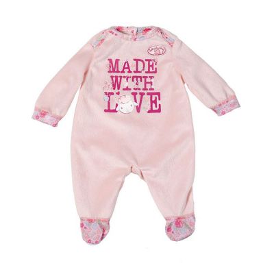 Śpioszki dla lalki. Urocze śpioszki to niezbędna część garderoby każdego maluszka. Śpioszki uszyto z przyjemnego w dotyku, różowego materiału i ozdobiono napisem Made With Love oraz śliczną aplikacją z motywem owieczki.Dla lalki o wysokości do 46 cm. Zestaw nie zawiera lalki.