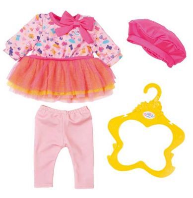 Sukienka z leginsami dla lalki Baby Born 43 cm w zestawie z beretem.Sukienka w kolorze niebiesko biało różowym, różowymi leginsami i czapeczką.Zapf Creation AG to niemiecka firma, założona przez Maxa i Rosę Zapf w 1932 rok u w Roedentalu. Zapf Creation jest wiodącym producentem...