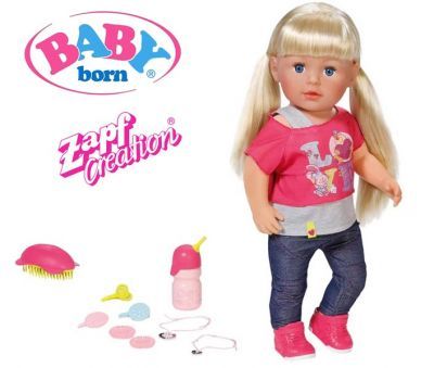 Najnowszy model lalki - Baby Born Sister, siostrzyczka najpopularniejszej lalki Baby Born. Posiada długie, blond włosy gotowe do czesania.Baby Born - Interaktywna Lalka 43 cm wielofunkcyjna, przypomina prawdziwego dzidziusia! Uwaga - jest to najwyższy model Baby Born- największy HIT tego...