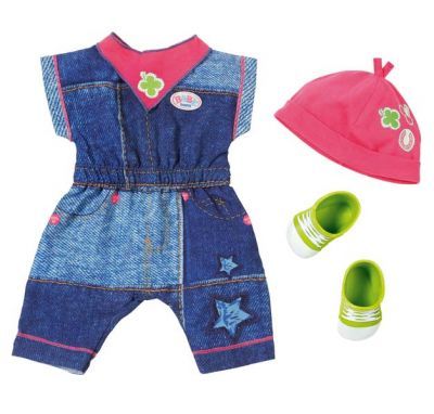 Jeansowy kombinezon z różową czapką i zielonymi bucikami dla lalki Baby Born 43 cm. Od 3 do 8 lat.Zapf Creation AG to niemiecka firma, założona przez Maxa i Rosę Zapf w 1932 rok u w Roedentalu. Zapf Creation jest wiodącym producentem markowych lalek funkcyjnych i akcesoriów w Europie. Do...