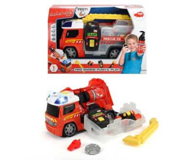 S.O.S Straż pożarna z akcesoriami bez napędu, z dźwiękiem i światłem.Dołączone akcesoria:odznaka strażacka,latarka (bez baterii),gaśnica z możliwością pryskania,walkie talkie,toporek,wersja polska.Zabawka wymaga zasilania bateriami: 2 x 1,5V (w zestawie).Dickie to część...