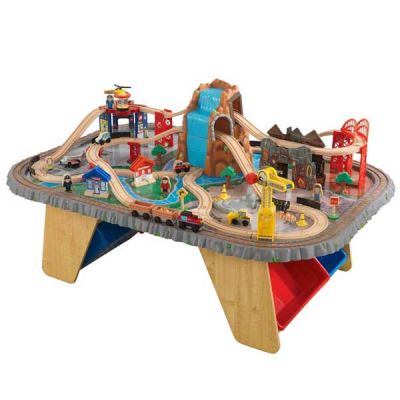 112 częściowa trasa rozciąga się wokół makiety, przez mosty oraz przez górę z wodospadem. Uniesione brzegi stolika w postaci torowiska zapobiegają spadaniu zabawek ze stolika na podłogę.Tory są kompatybilne z innymi znanymi markami kolejek.Cechy produktu:- Precyzyjnie wykonane...