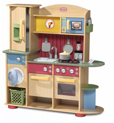 Drewniana Kuchnia Fantastyczny zestaw kuchenny amerykańskiej firmy Little Tikes! Tu każdy maluch odnajdzie to co jest niezbędne do doskonałej zabawy przez wiele godzin. Drewniany aneks kuchenny posiada zlew z kranem, pod którym znajduje się zmywarka z kurkiem. Niezbędnym elementem jest...