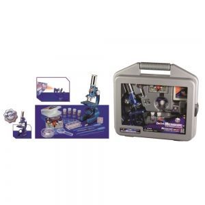 Mikroskop Delux zamknięty w praktycznej plastikowej walizce to bardzo dokładne urządzenie badawcze, idealne dla dorastających naukowców.