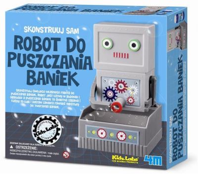 ROBOT DO PUSZCZANIA BANIEK Dla dzieci powyżej 8. roku życia. Zestaw nieodpowiedni dla dzieci poniżej 3 roku życia. Skonstruuj własnego robota do puszczania baniek. Robot jest łatwy w budowie i obsłudze, a puszczanie baniek to wspaniała zabaw dla ciebie i twoich...