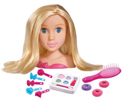 Simba Głowa do stylizacjiGłowa posiada długie blond włosy i niebieskie oczy.Zestaw zawiera:- szczotkę- gumki- spinki- szminkę- cienie do powiek- pędzelekŁącznie 16 elementówWymiary: 19cmSimba Toys Polska jest spółką należącą do niemieckiego koncernu Simba Dickie Group....