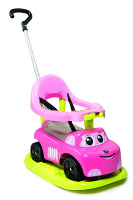 Jeździk z kierownicą, wygodnym siedzeniem ze schowkiem na drobiazgi, z oparciem - rączką do prowadzenia przez dziecko, z wypustkami uniemożliwiającymi wywrócenie się w przód i tył. Elektroniczny klakson.Jeździk 4 w 1.Smoby to francuska firma z tradycjami sięgającymi roku 1924,...