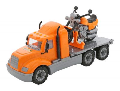 Rewelacyjna Ciężarówka z motocyklem firmy Wader. Ciężarówka ta,to 53 centymetrowe auto z serii cieszącej się dużą popularnością wśród dzieci.Ogromna 3-osiowa ciężarówka z motocyklem renomowanej firmy Wader Pojazdy te można używać w zestawie lub oddzielnie,dzieki czemu zabawa...