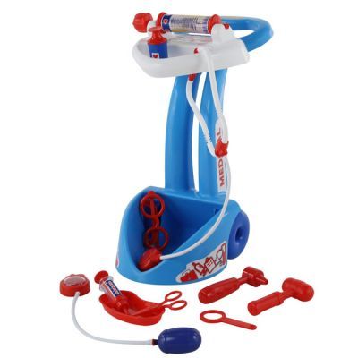 WADER WÓZEK LEKARZA z akcesoriami.Wygodny uchwyt.Bogato wyposażony zestaw.Stabilny wózek na kółkach.Półeczka na przybory lekarskie.12 elementów: wózek, ciśnieniomierz, 2 strzykawki, nożyczki, podstawka na leki, lupa, młoteczek, otoskop, okulary, stetoskop, pojemnik na leki.Od 3...
