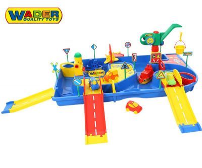 Ogromny Tor Wodny renomowanej firmy Wader to doskonały produkt do zabawy zarówno domu jak i na podwórku Idealny prezent na każdą okazję.Tor wodny wyposażony w ruchome elementy, które uatrakcyjnią zabawę. Dziecko może wlewać wodę do zabawek dołączonych do stolika,zagradzać korytarze...